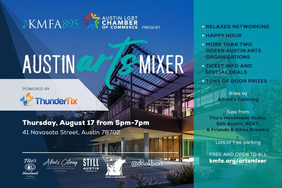 The SoCo Women's Chorus will be taking part in the Austin LGBT Chamber of Commerce Austin Arts Mixer at the new KMFA Building from 5-7p on Thursday, August 17. The event is free and open to all!